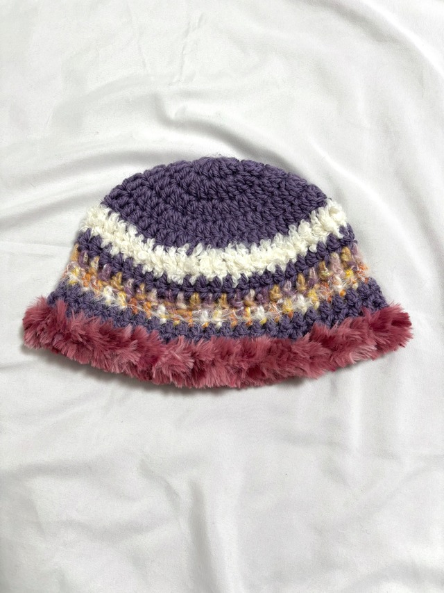 ファー ニット帽 パープル
