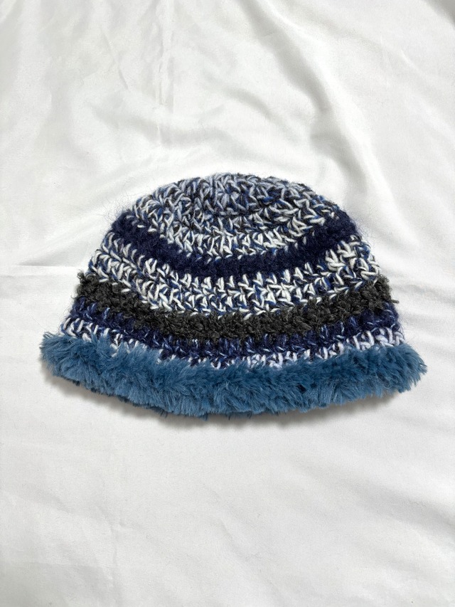 〈ファー ニット帽 ビーニー〉 もこもこのファーが目を惹くニット帽。 ブルーとライトグレーの毛糸を揃えて編んでいて、暗い髪の方でも重たくならず、おすすめです◎ ⚫︎サイズ 平置き: 高さ20cm 頭周り29cm×2 ⚫︎素材 アクリル/ポリエステル/ウール ⚫︎手入れ方法 水またはぬるま湯におしゃれ着用の中性洗剤を入れ、優しく押し洗いしてください。(熱いお湯で洗うと縮む可能性があります。また、洗いとすすぎの温度の変化でも縮む可能性があるため水温に注意してください。) 形を整えて、日陰で平干ししてください。 *POP UPに出品していた商品のため、メンテナンスを行い、掲載しております。 *ひとつひとつ丁寧に制作しておりますが、全て手編みの為、多少の目のばらつきやサイズに誤差が生じる場合がございます。 ハンドメイド作品であることにご理解の上ご購入お願いいたします。
