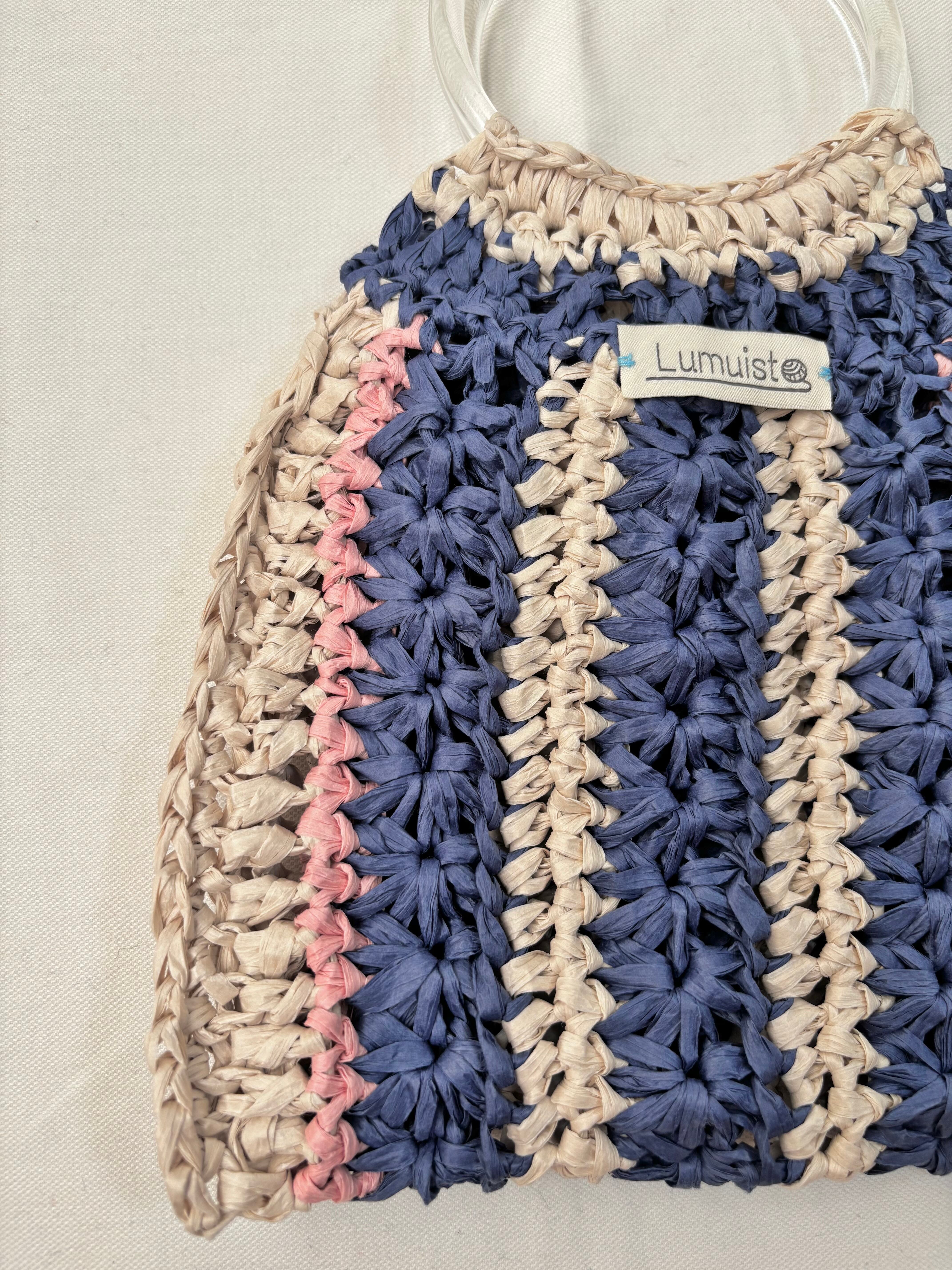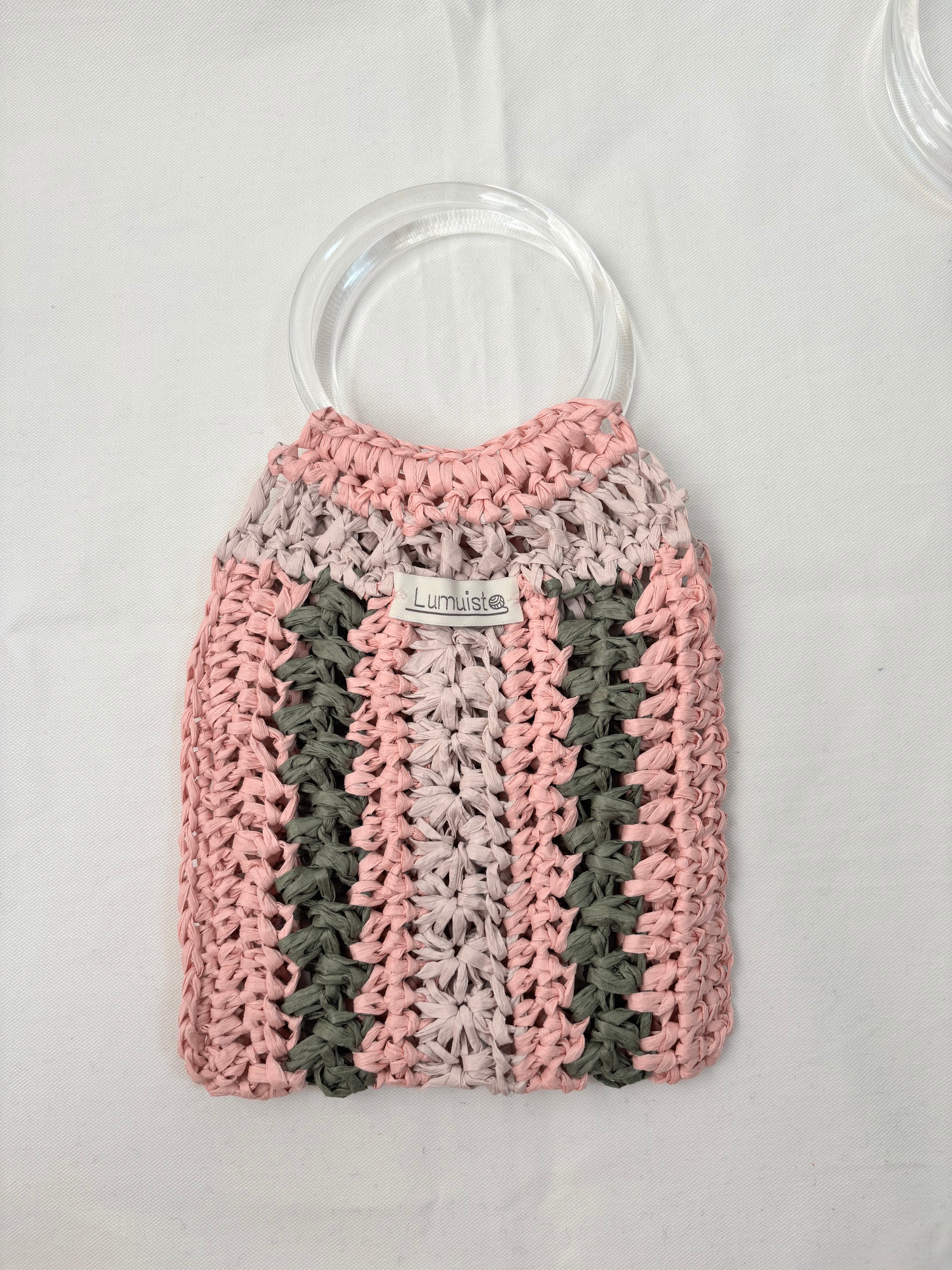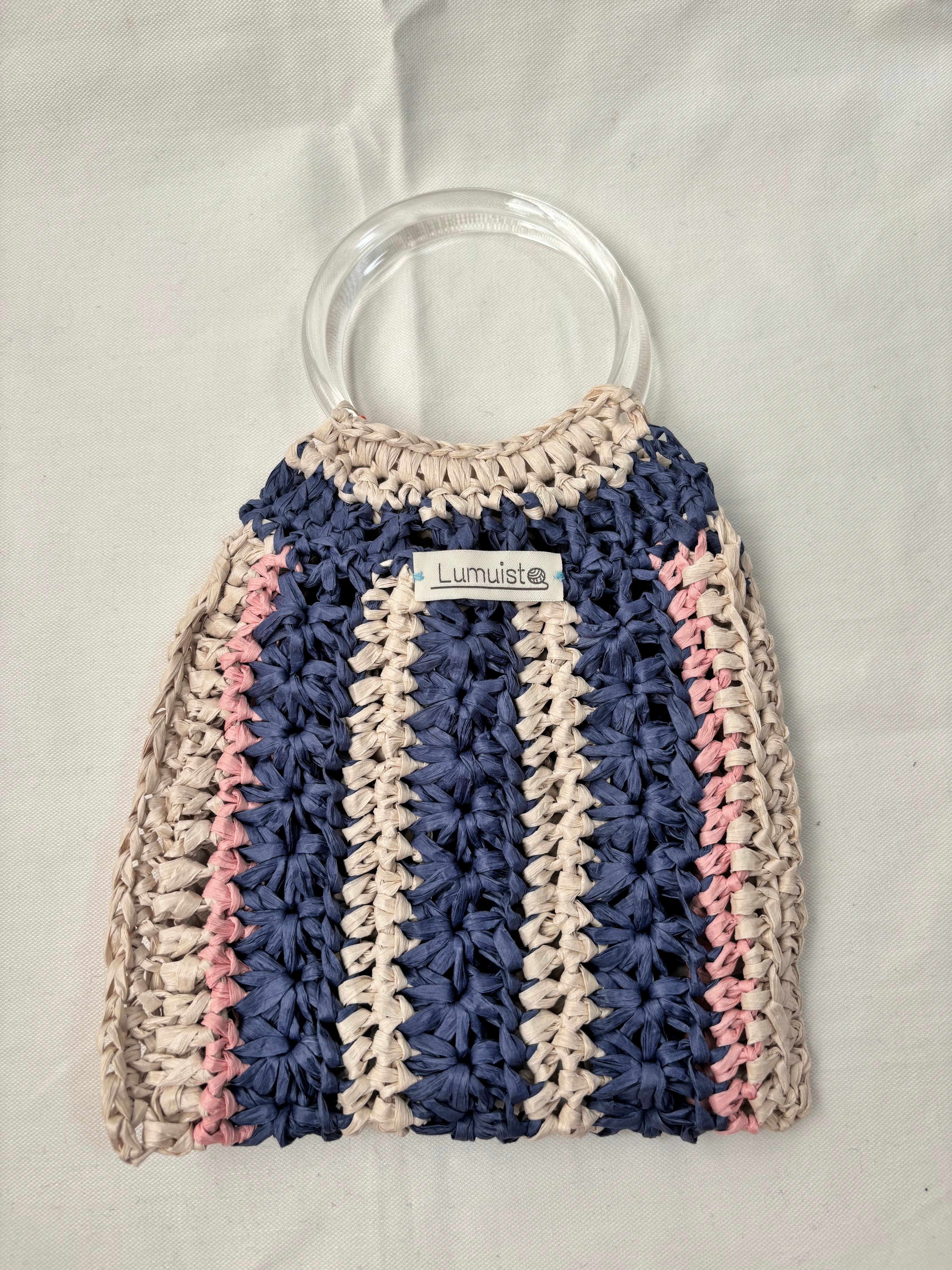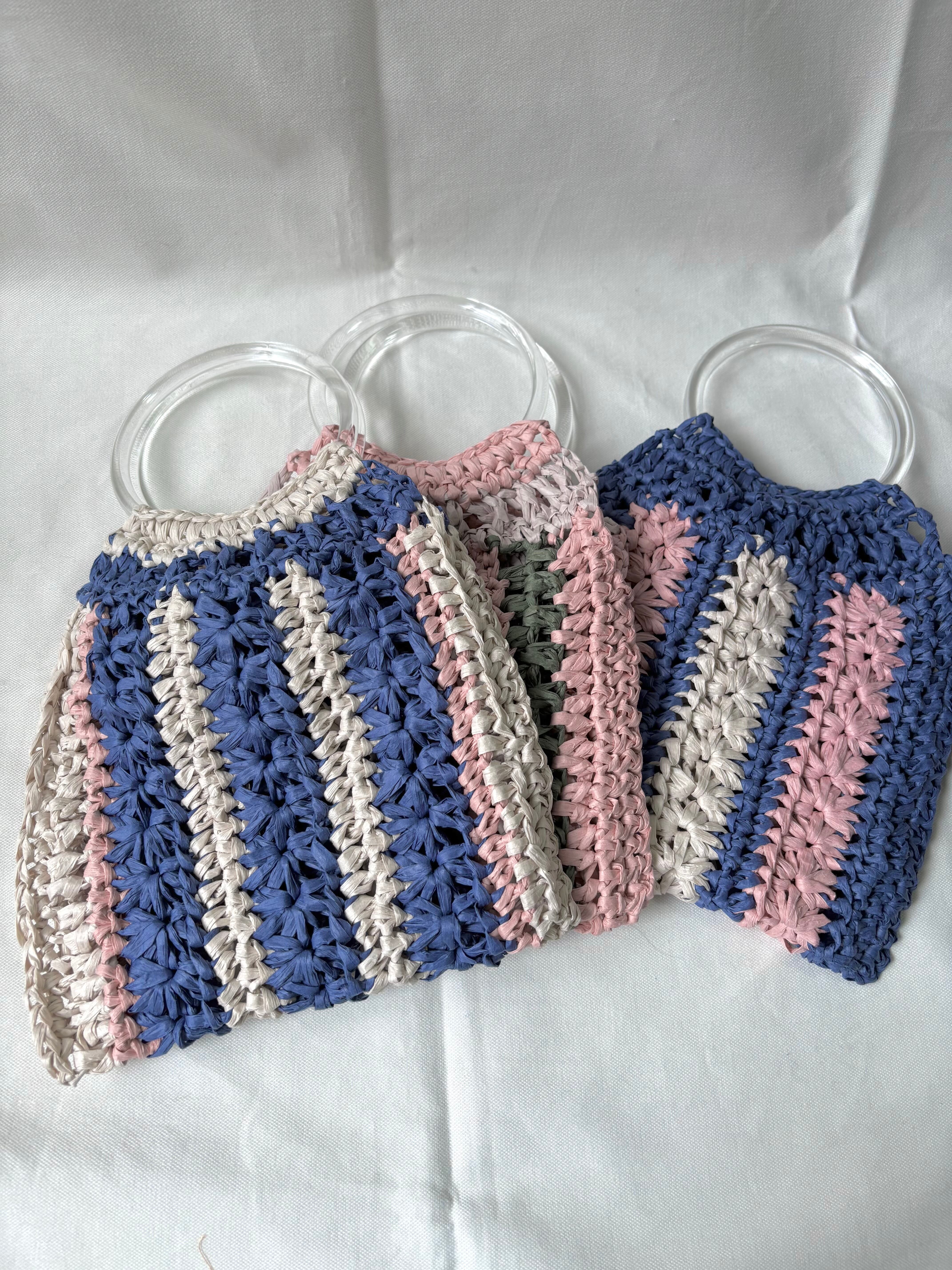 クリアのリングハンドルが夏らしいバッグ。