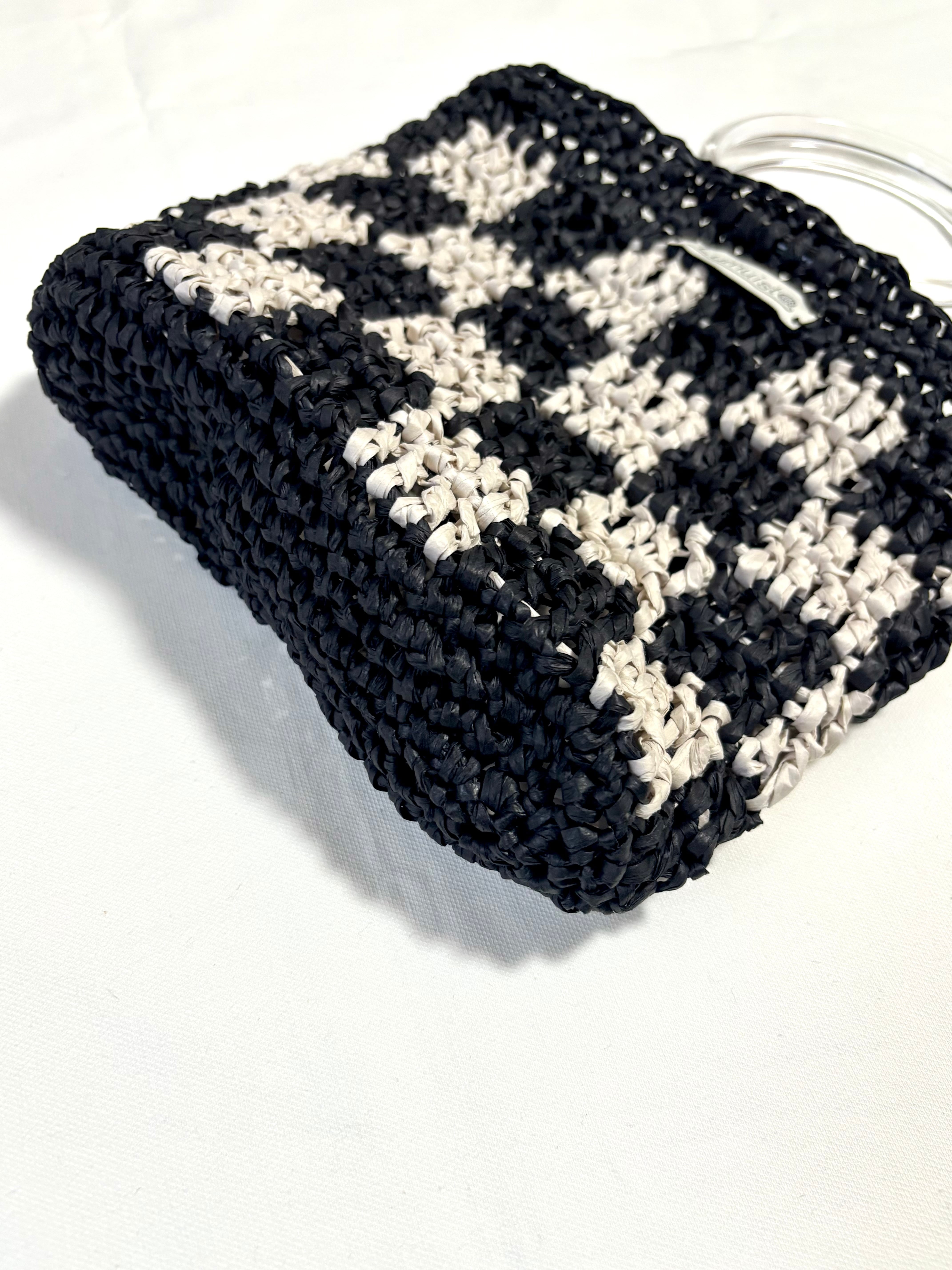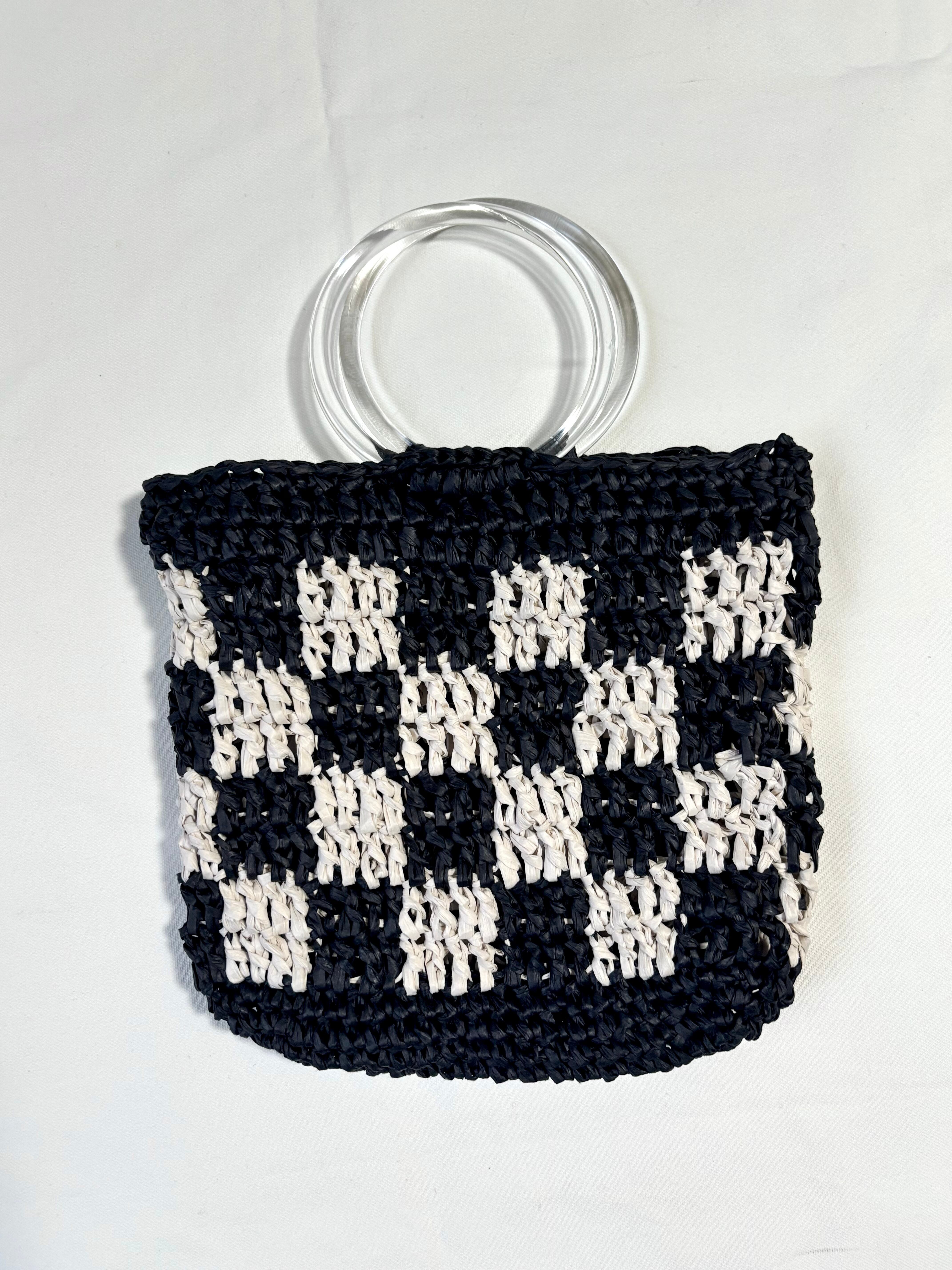 チェッカー柄が目を惹くリングハンドルバッグ。