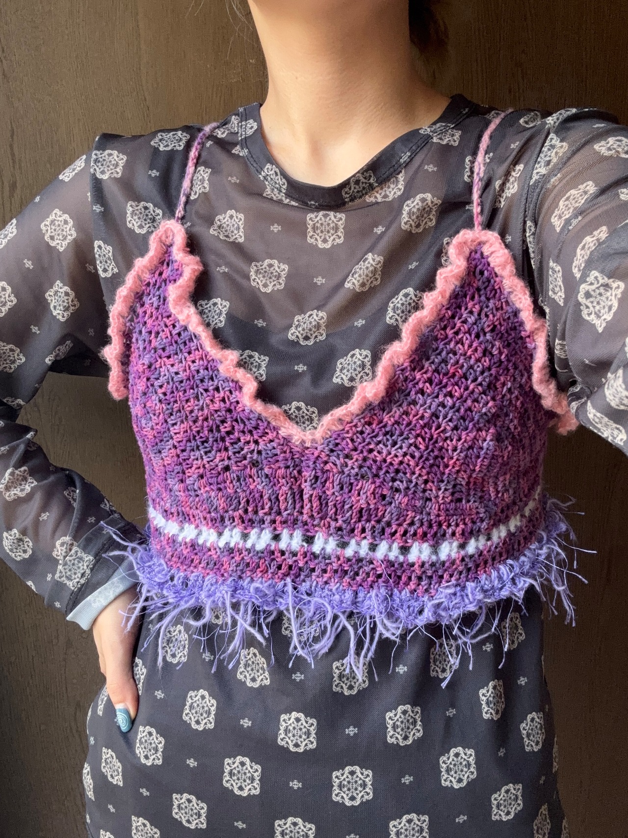 裾のフリンジが目を惹くビスチェ。