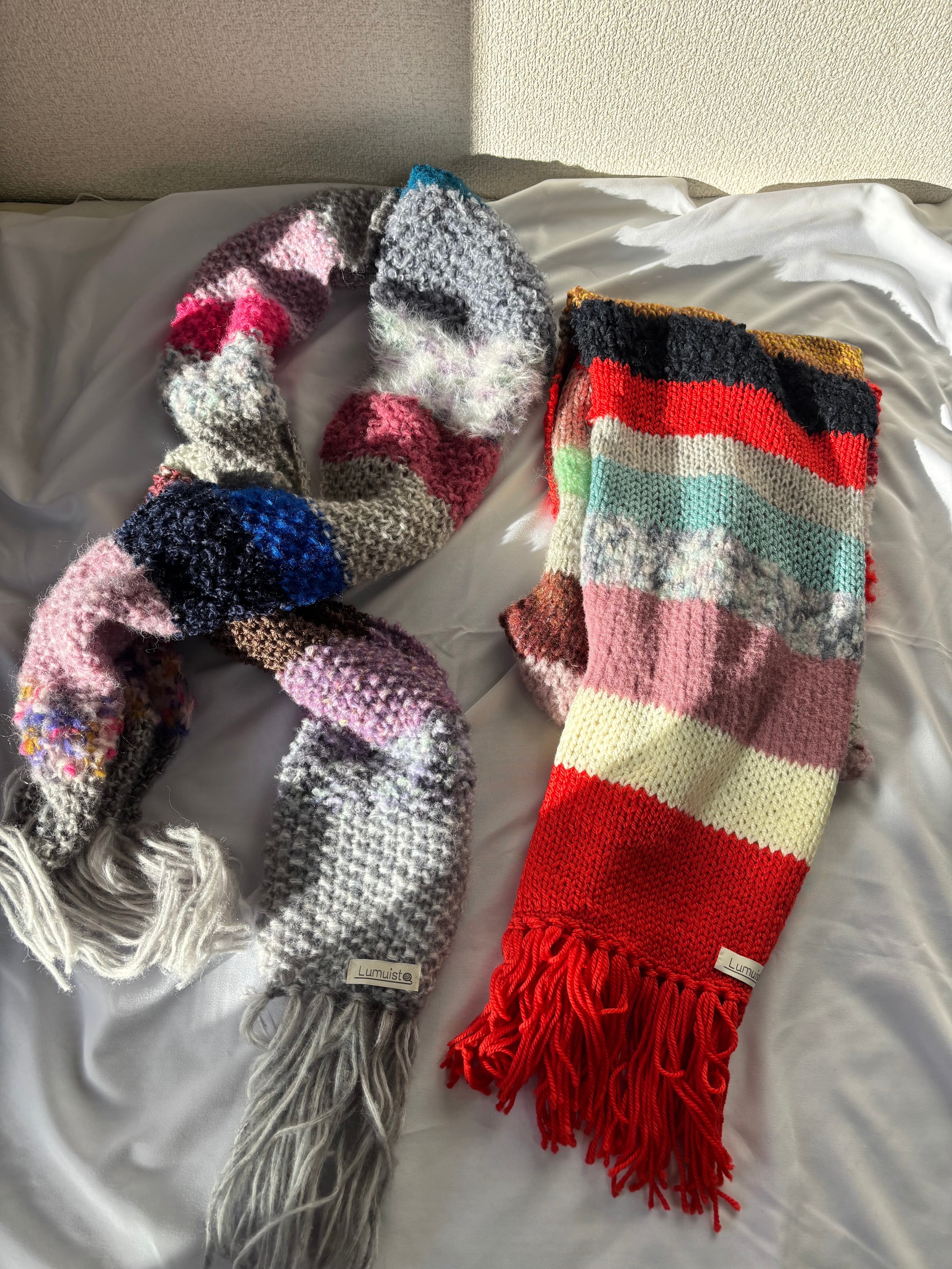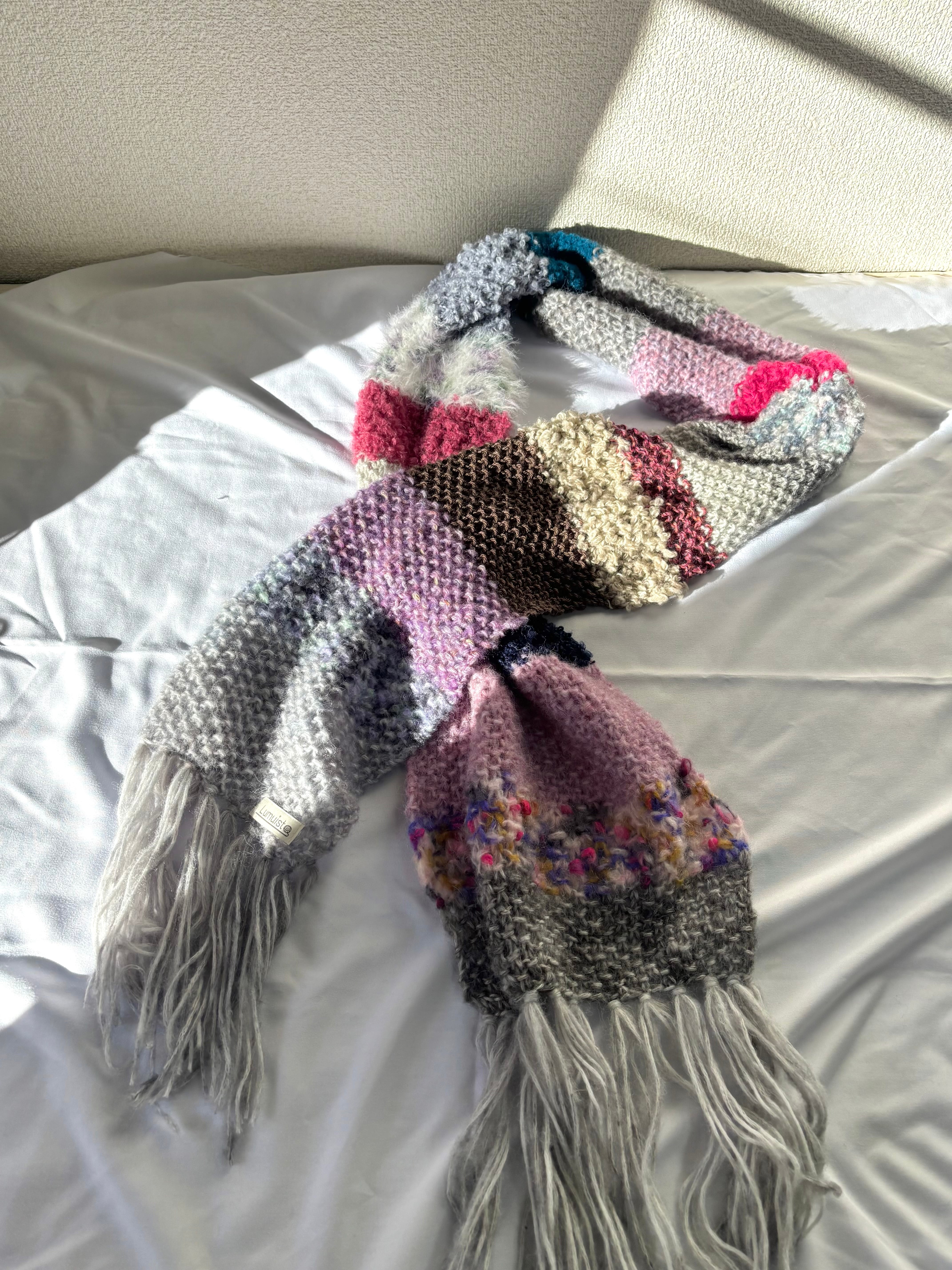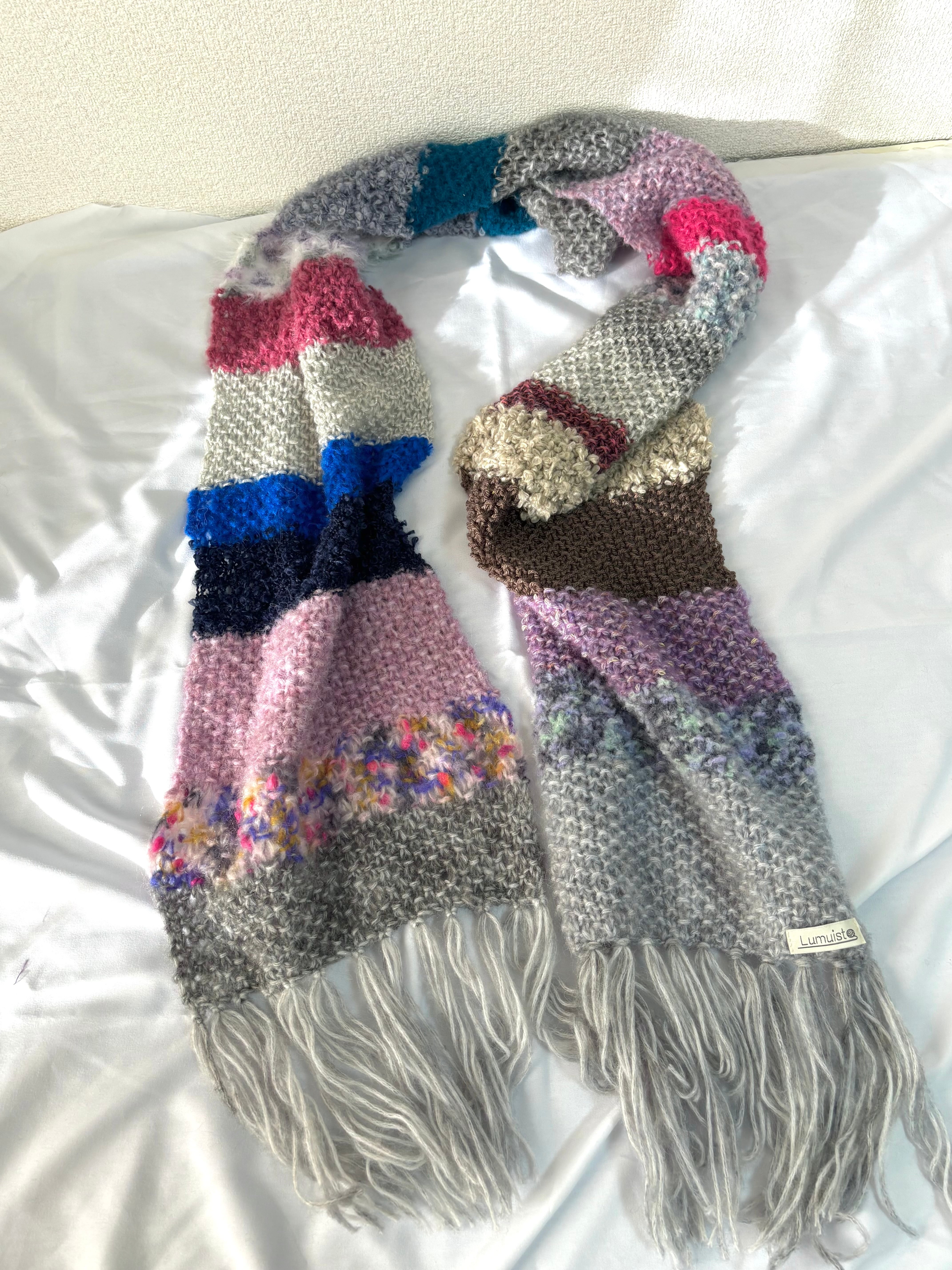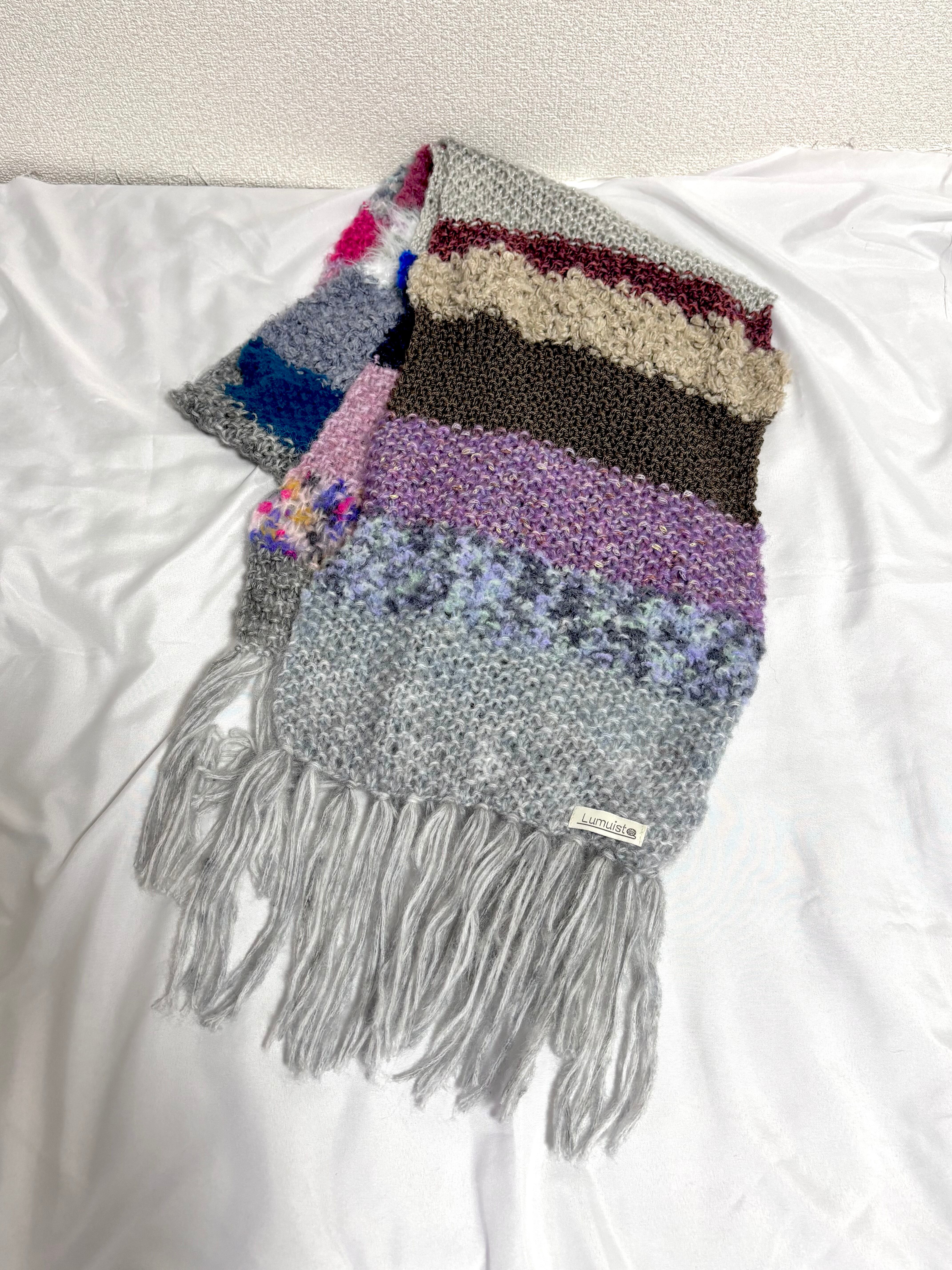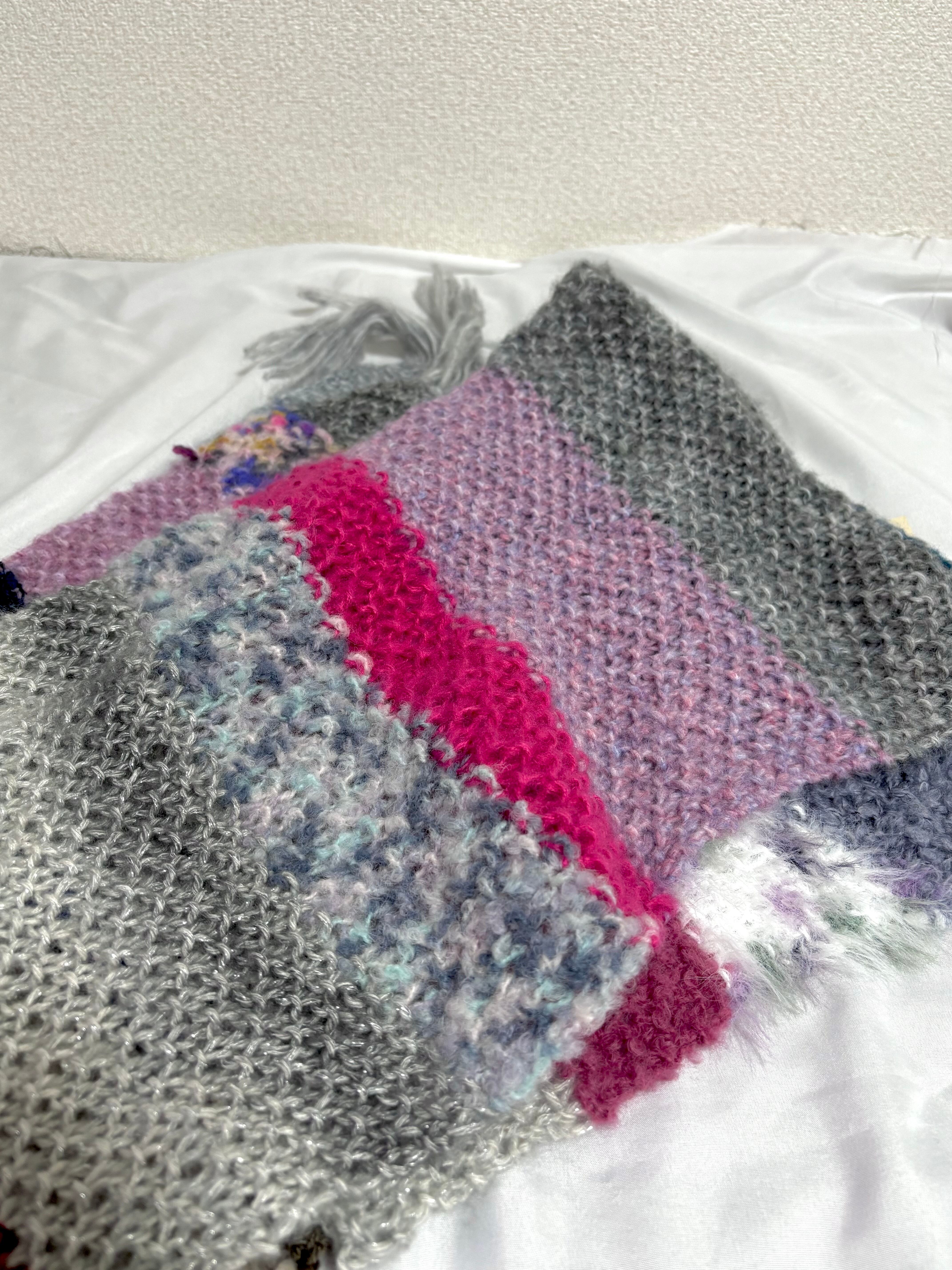 いろんな糸で編んだマフラー。