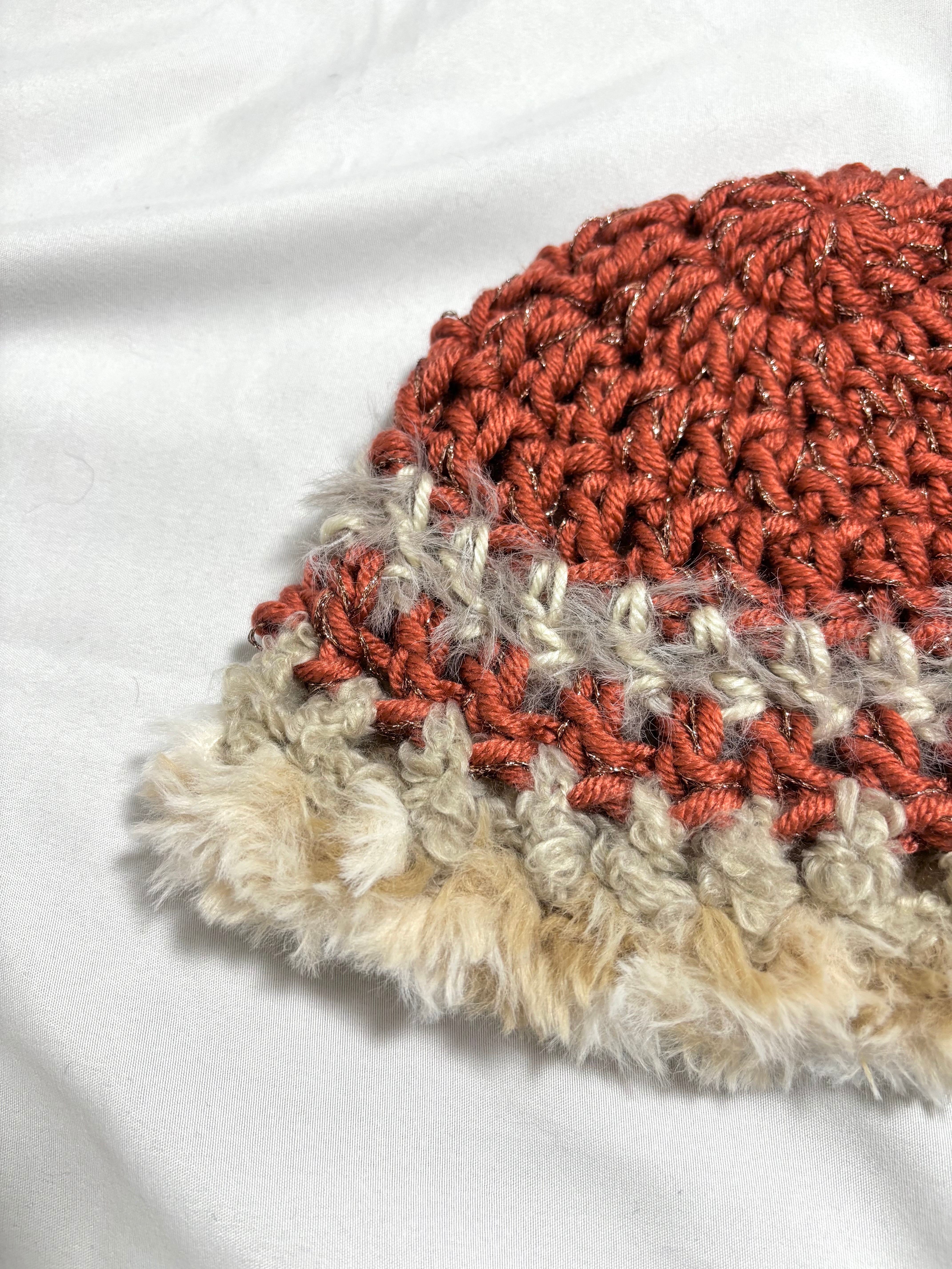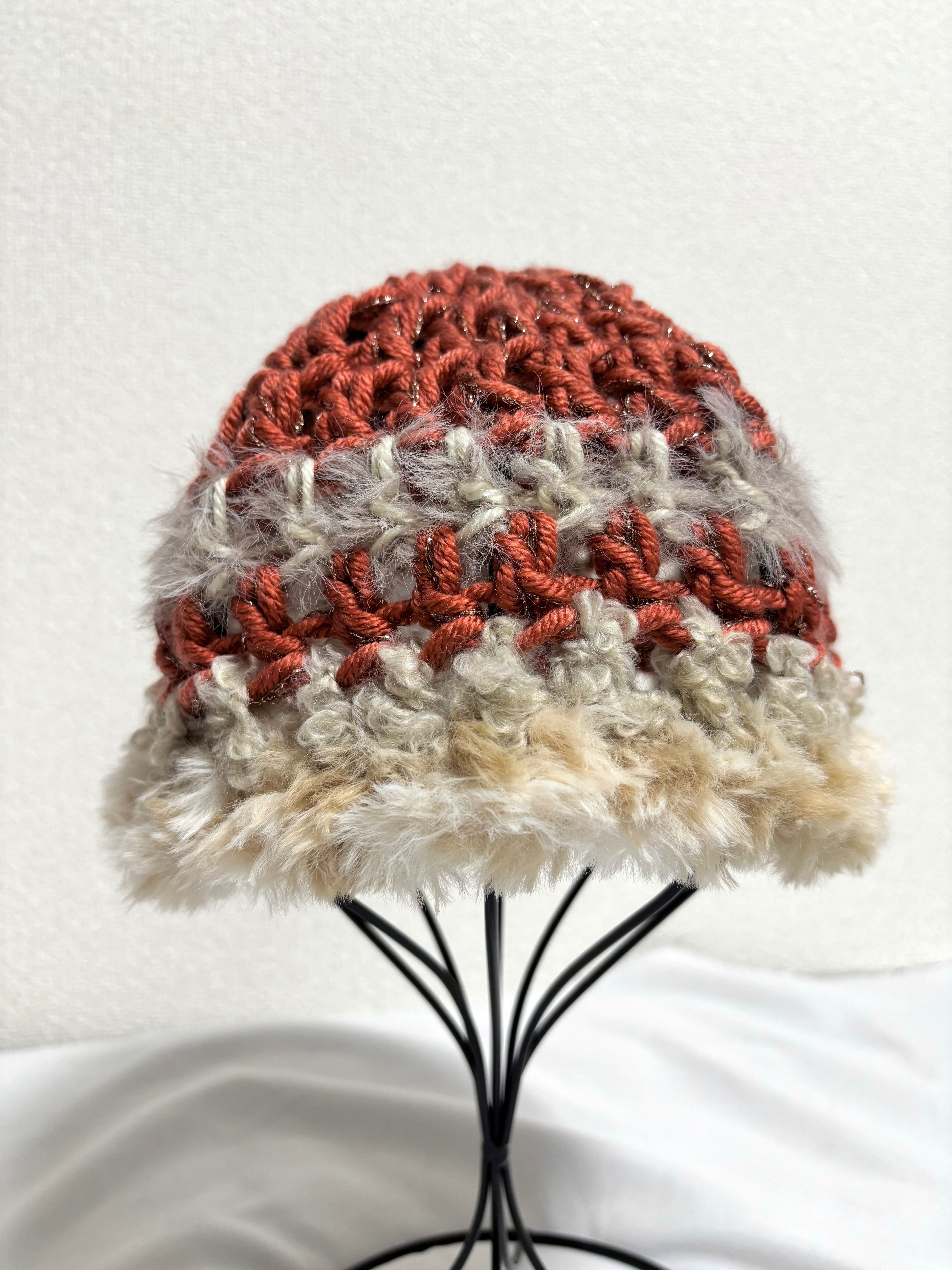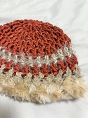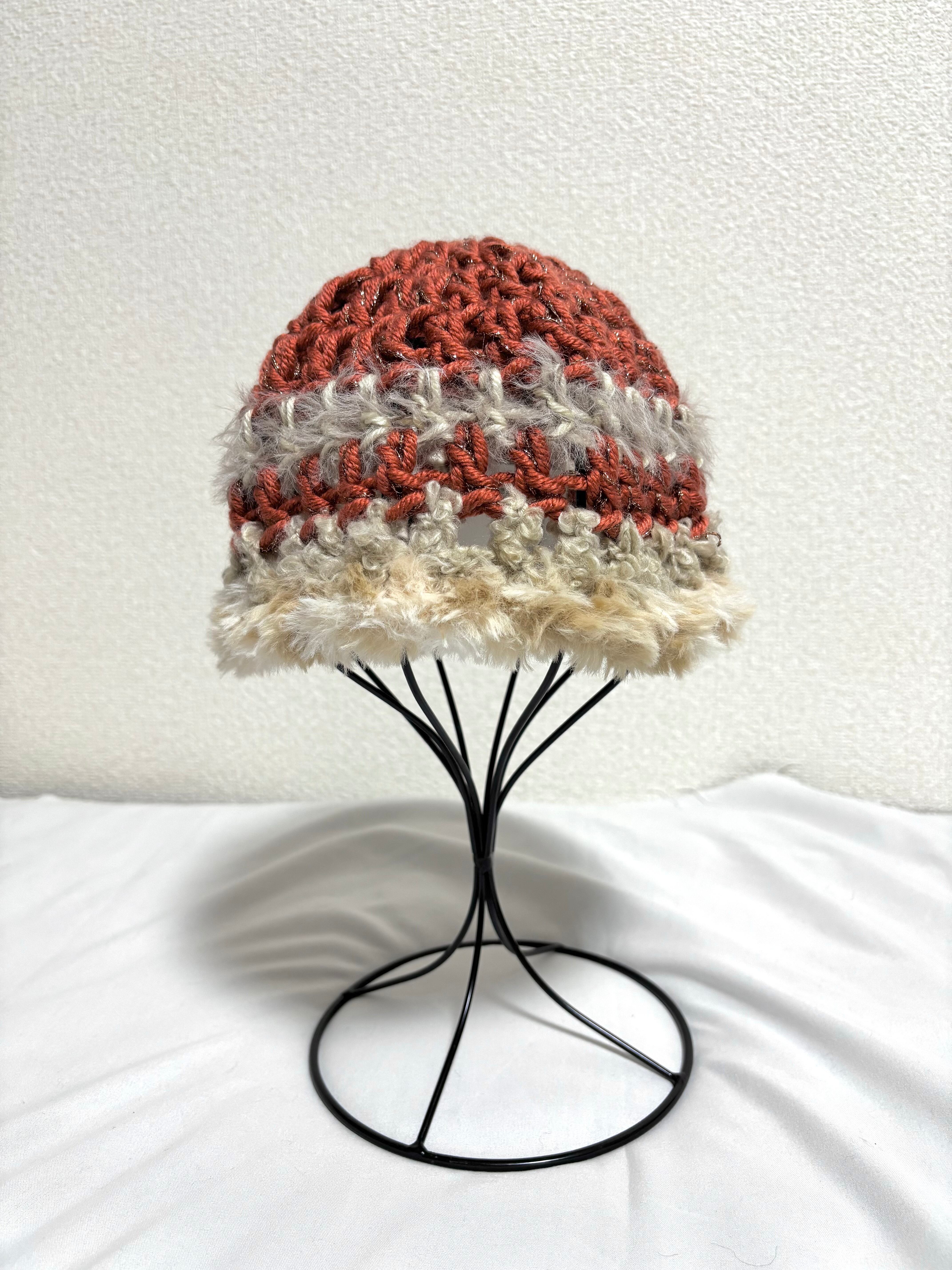 ファー ニット帽 オレンジ