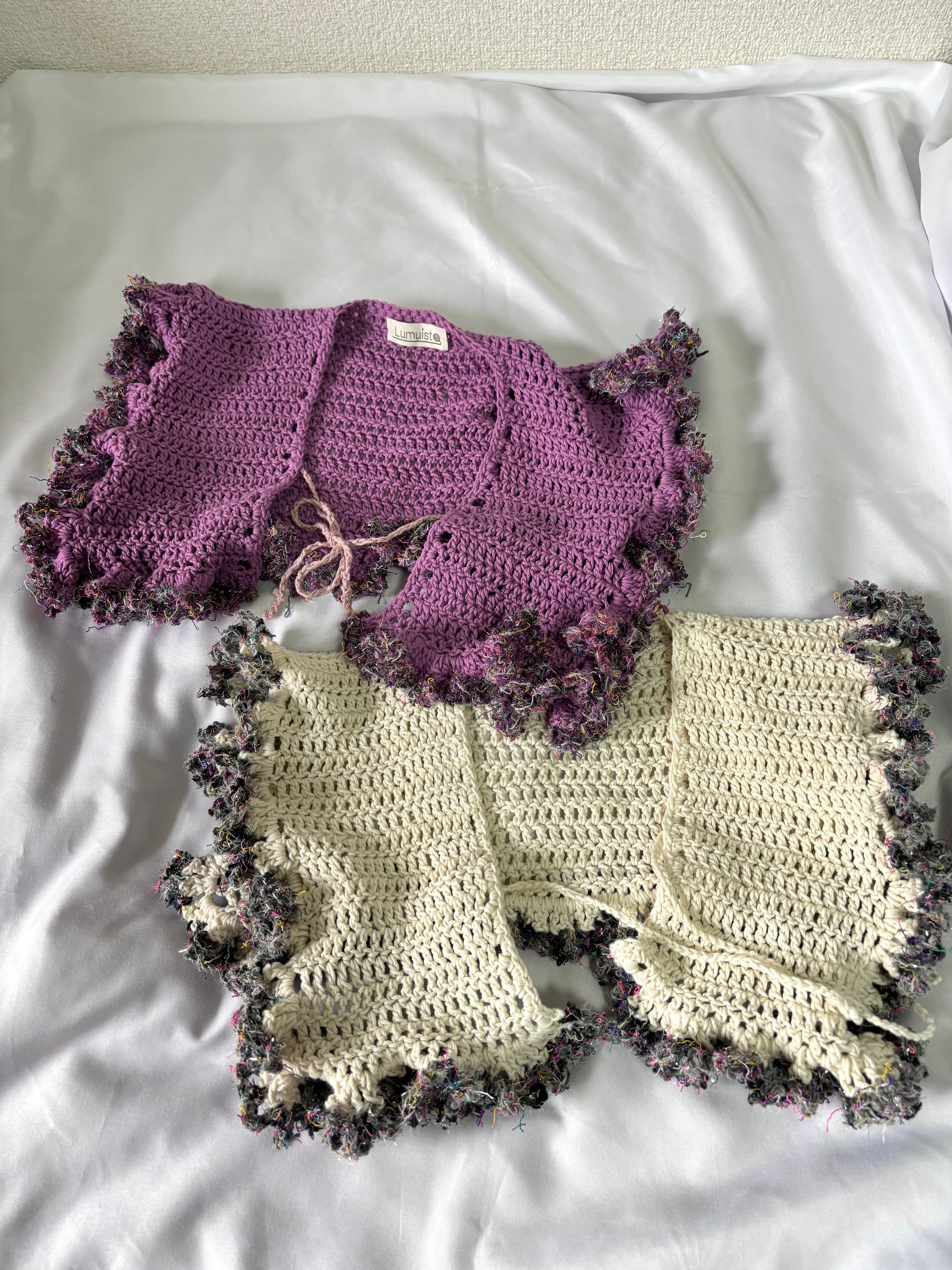 *ひとつひとつ丁寧に制作しておりますが、全て手編みの為、多少の目のばらつきやサイズに誤差が生じる場合がございます。