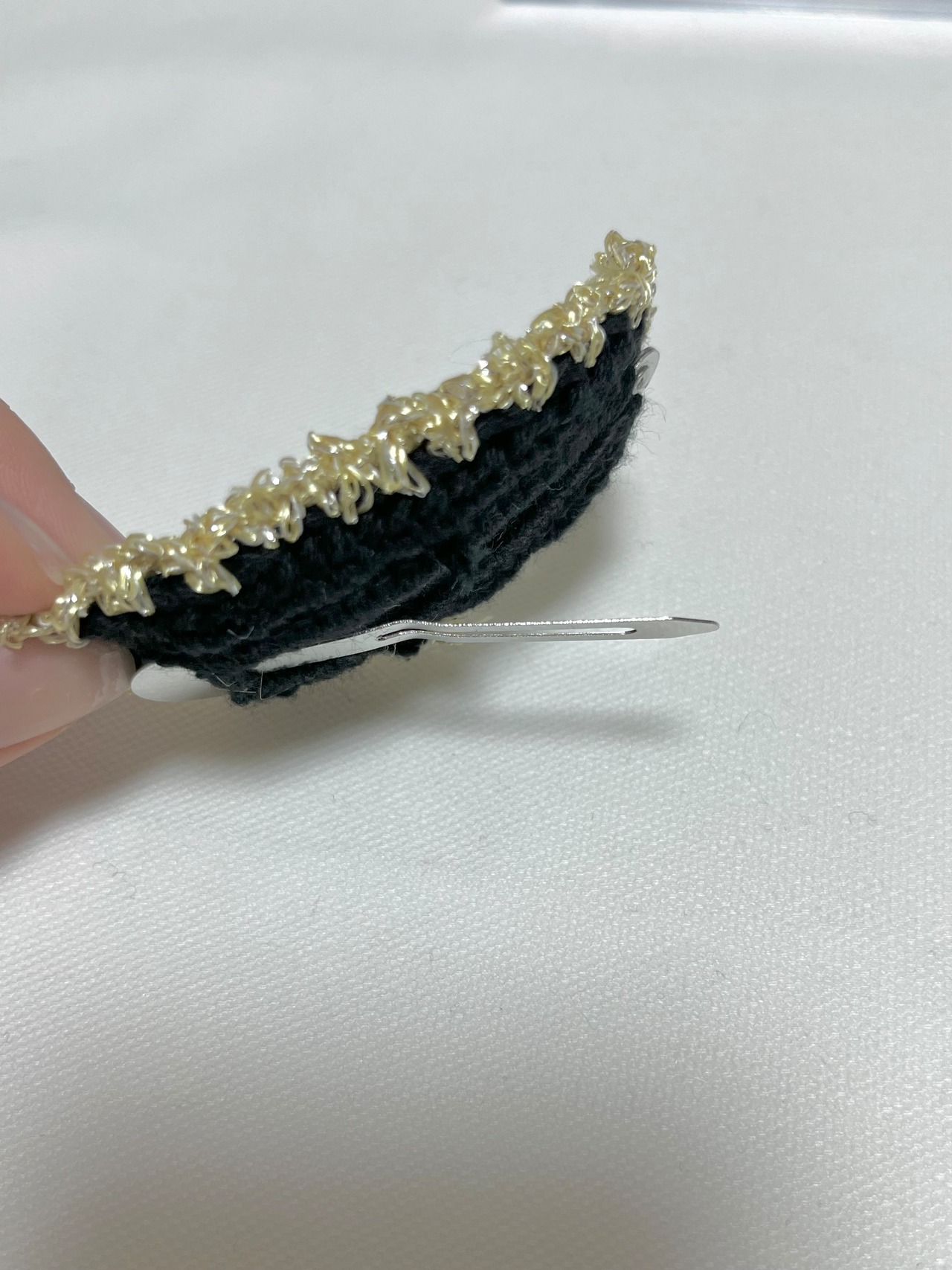 黒と白をベースに編んでいるので、子供っぽくならず、大人の方にもおすすめの一点です。