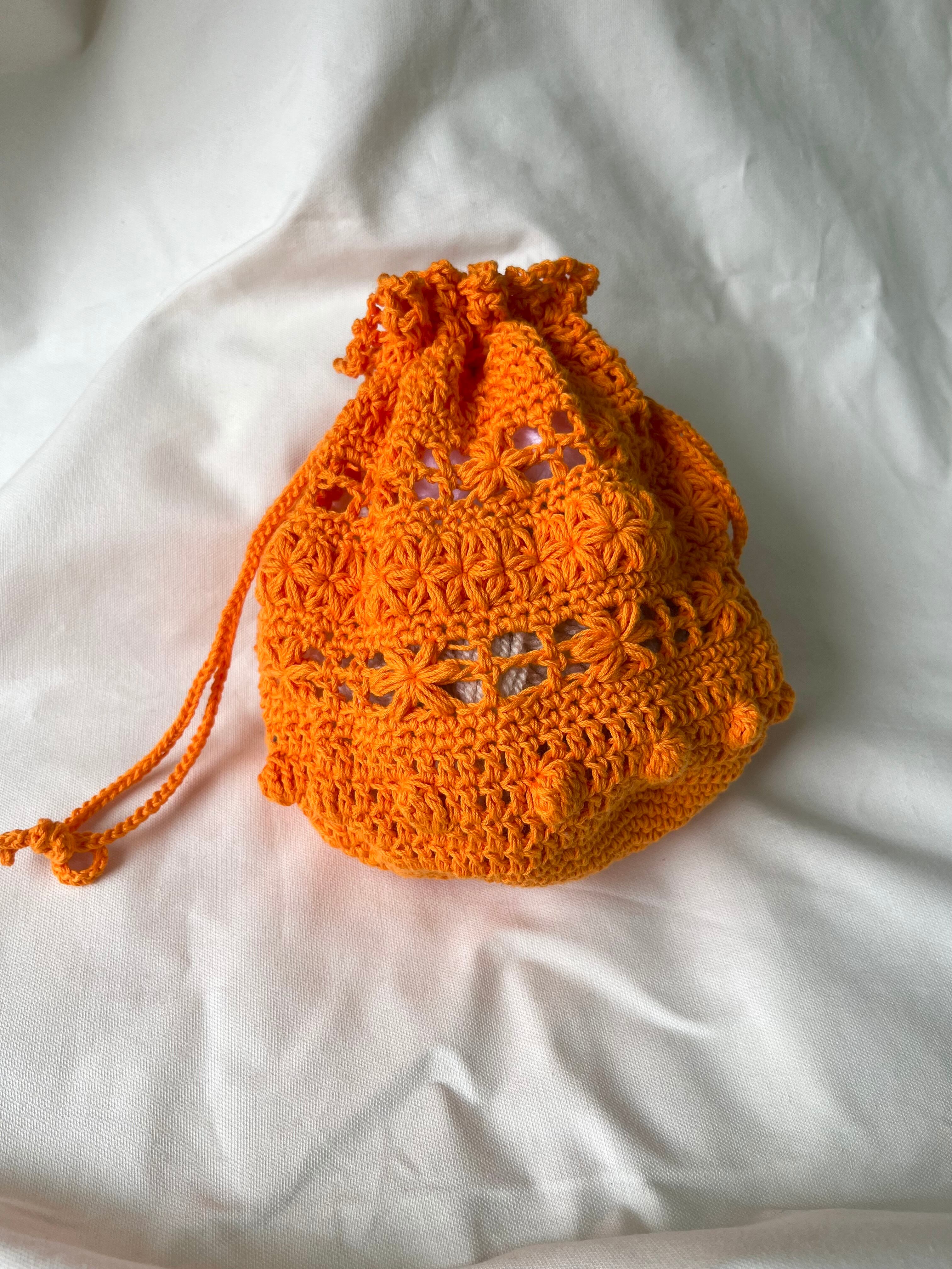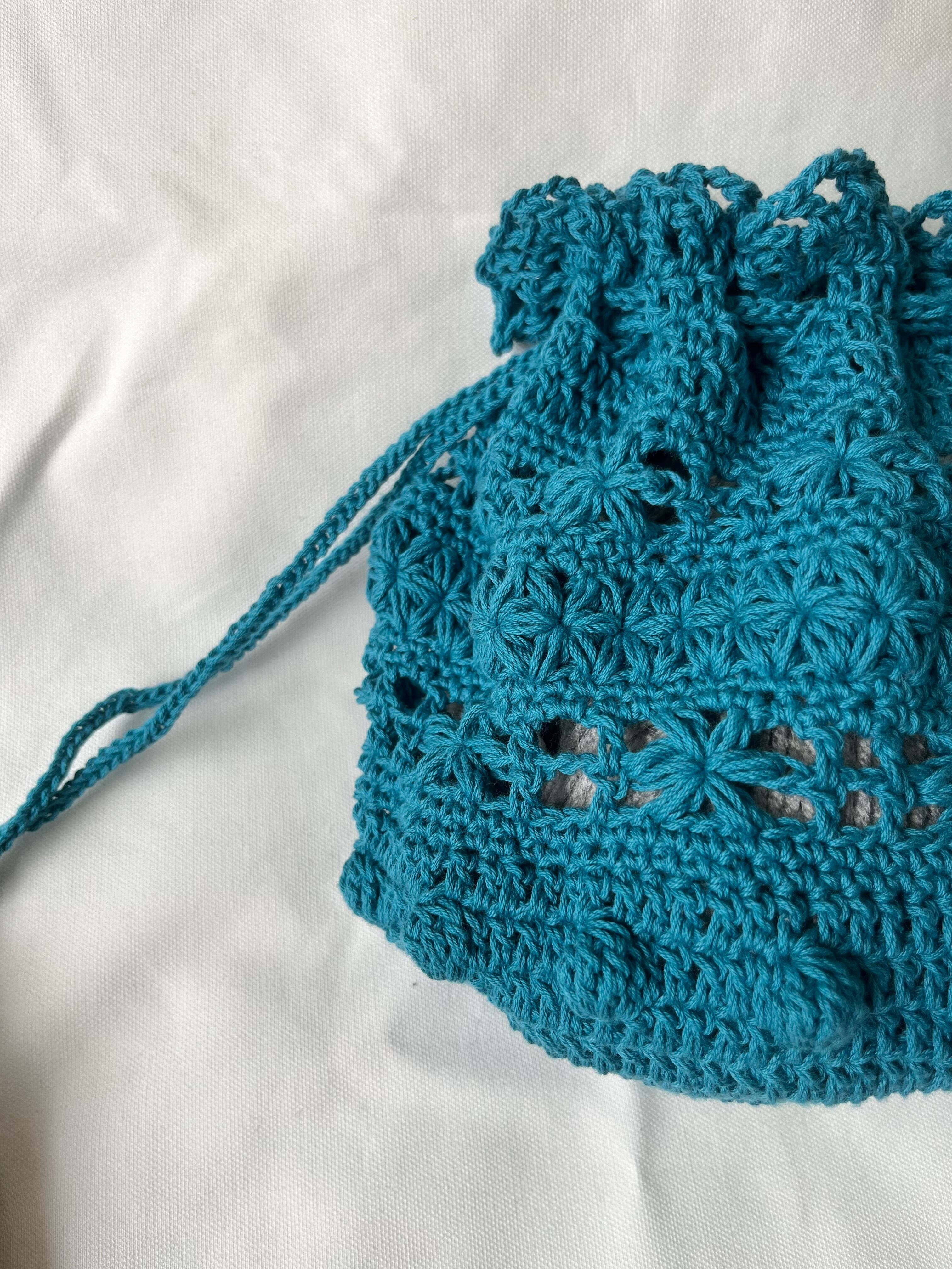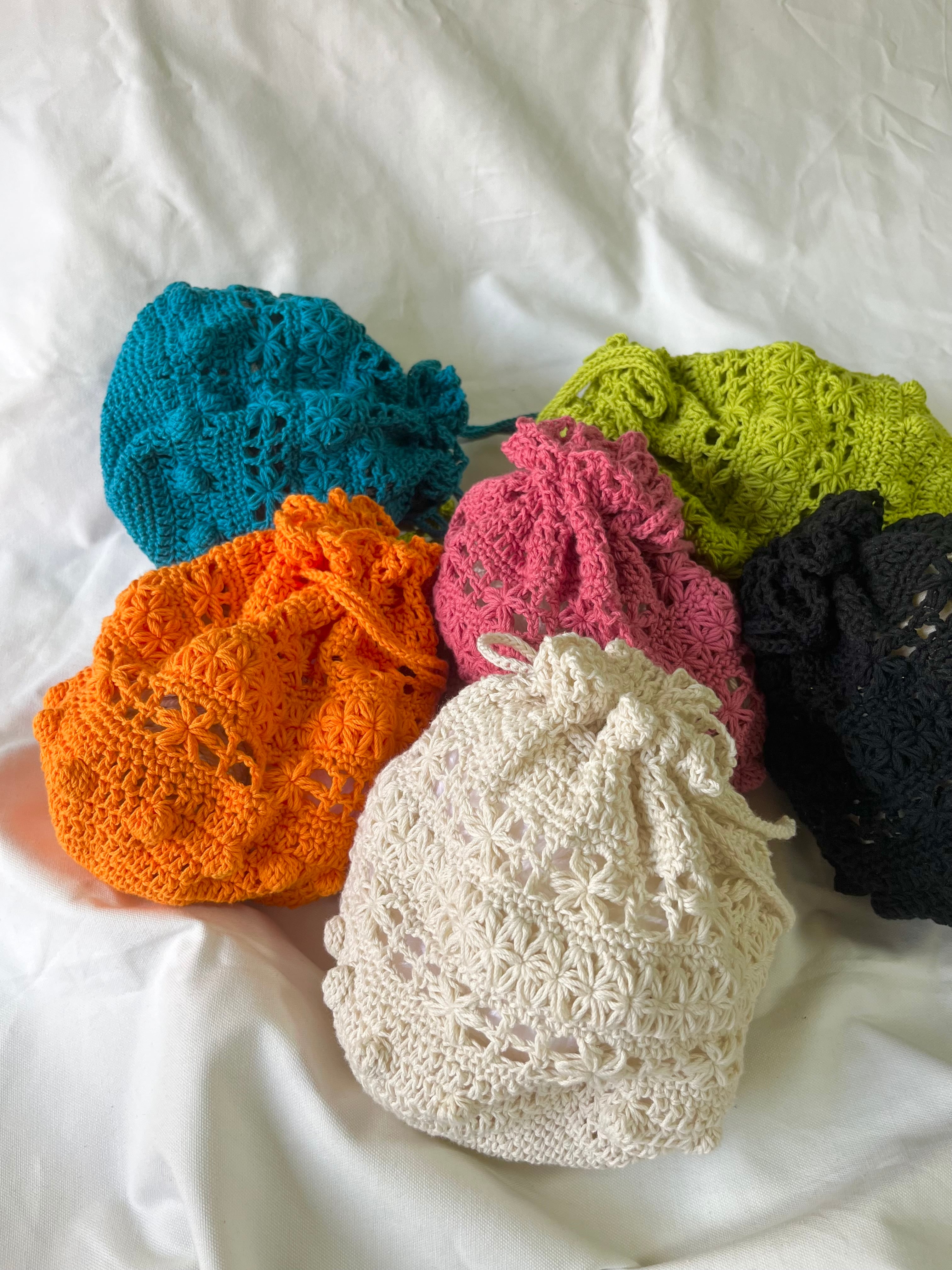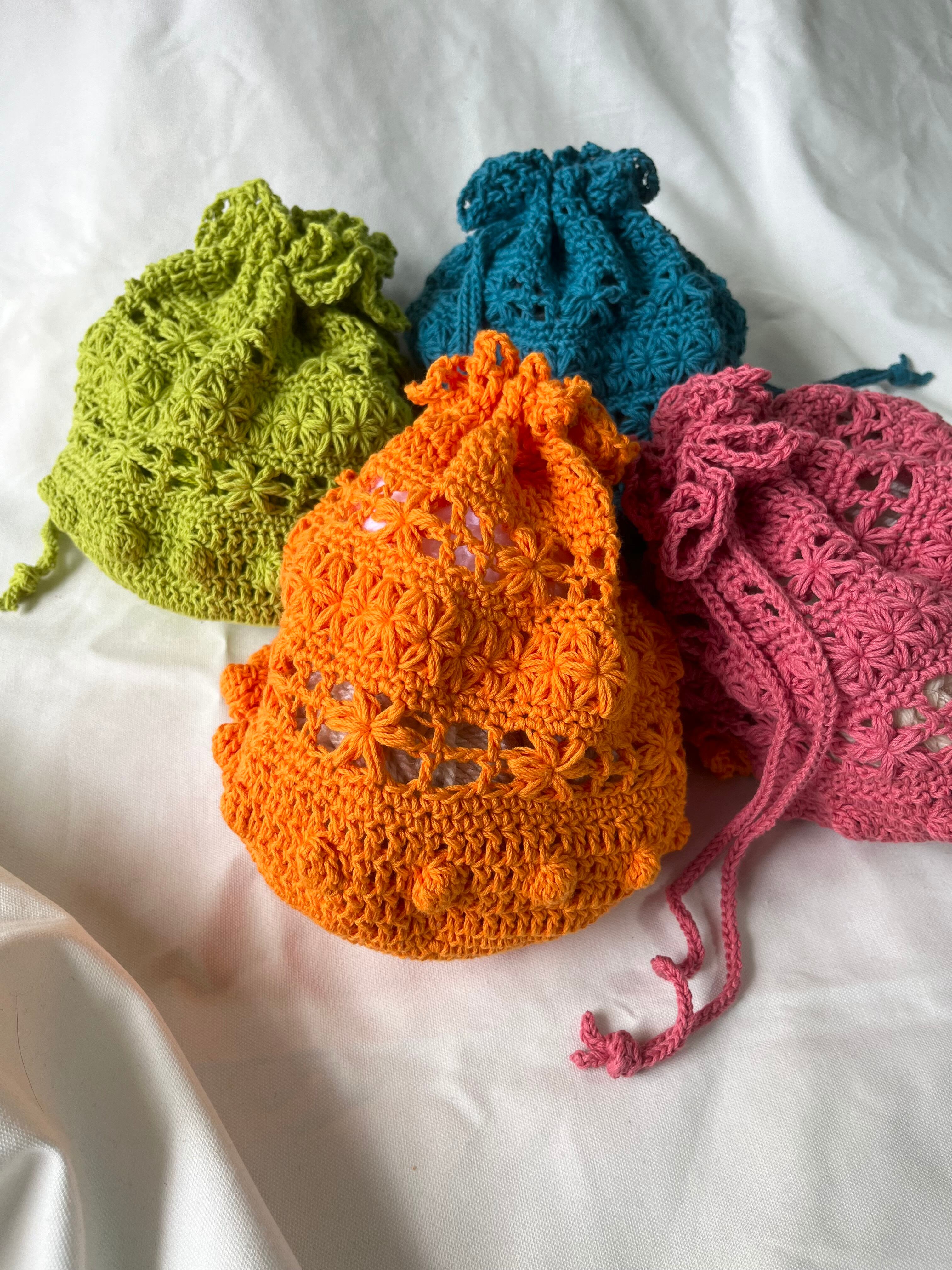 中が少し透けるように編んでいるので、別の巾着袋を入れるのも可愛いかと思います♡
