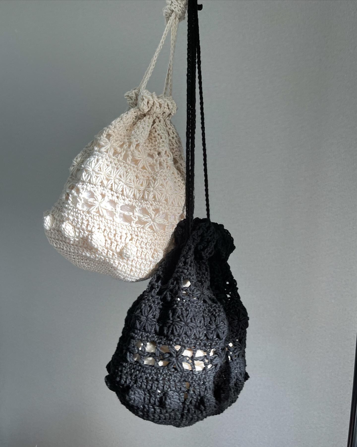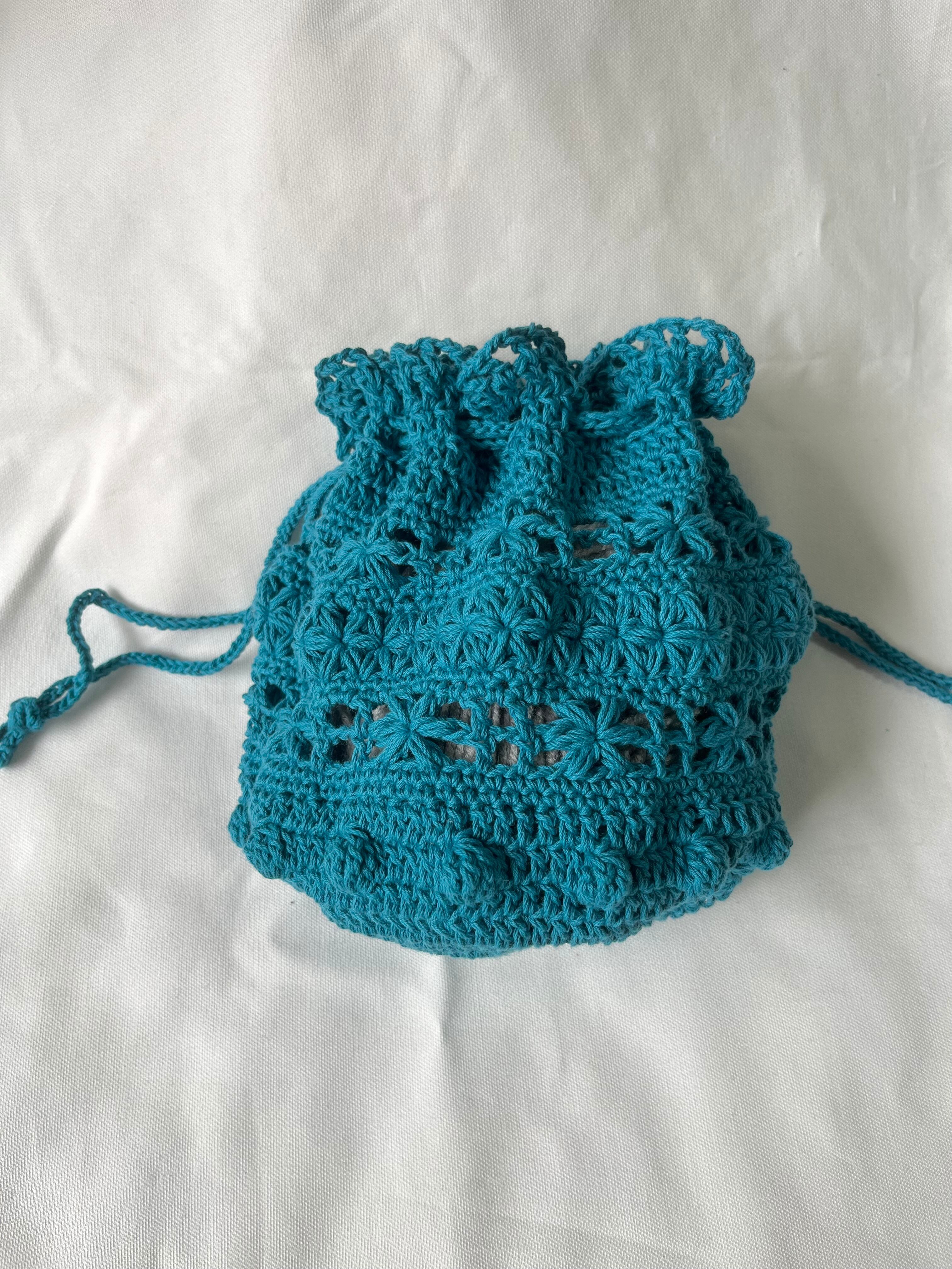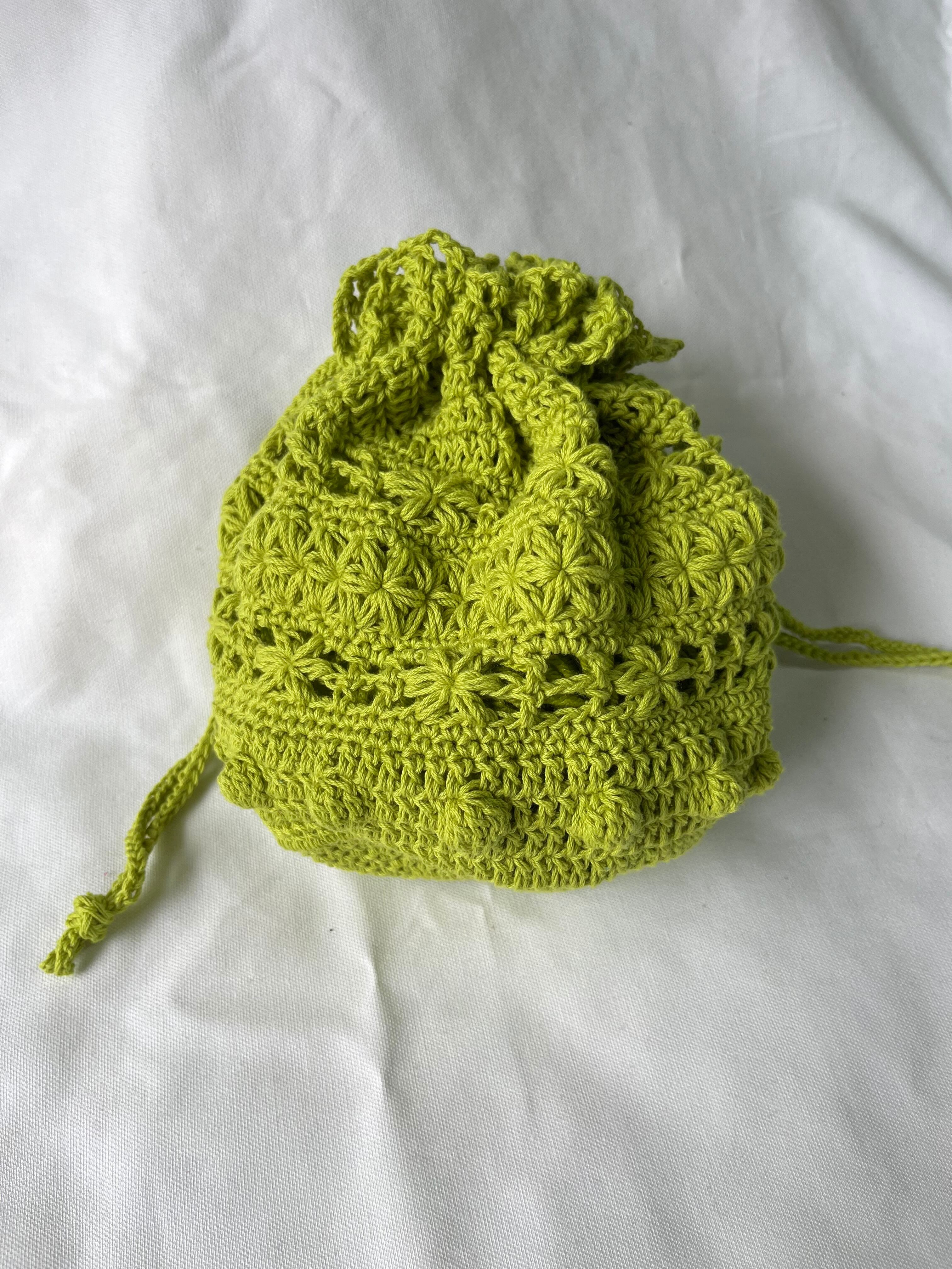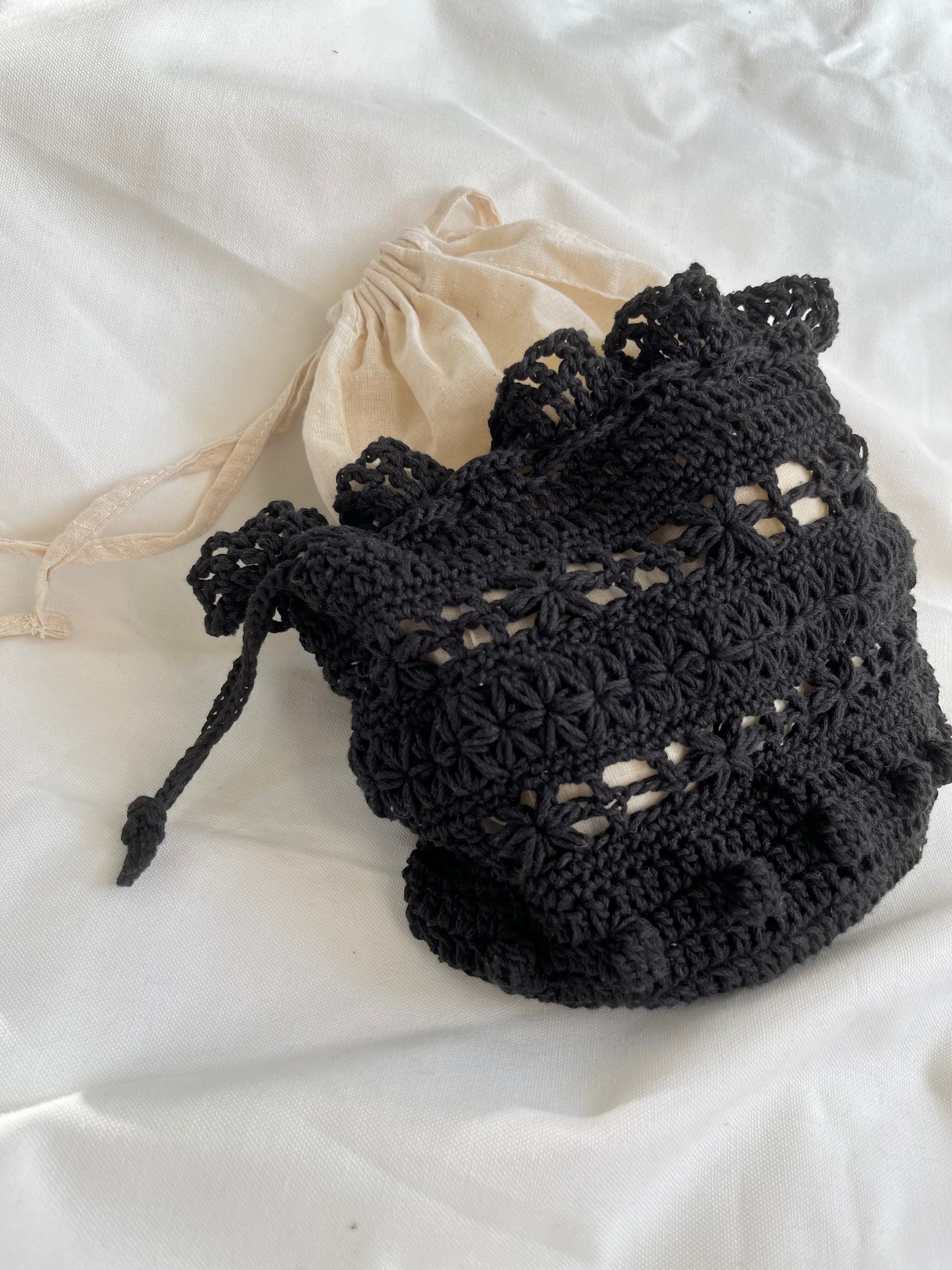 中が少し透けるように編んでいるので、別の巾着袋を入れるのも可愛いかと思います♡