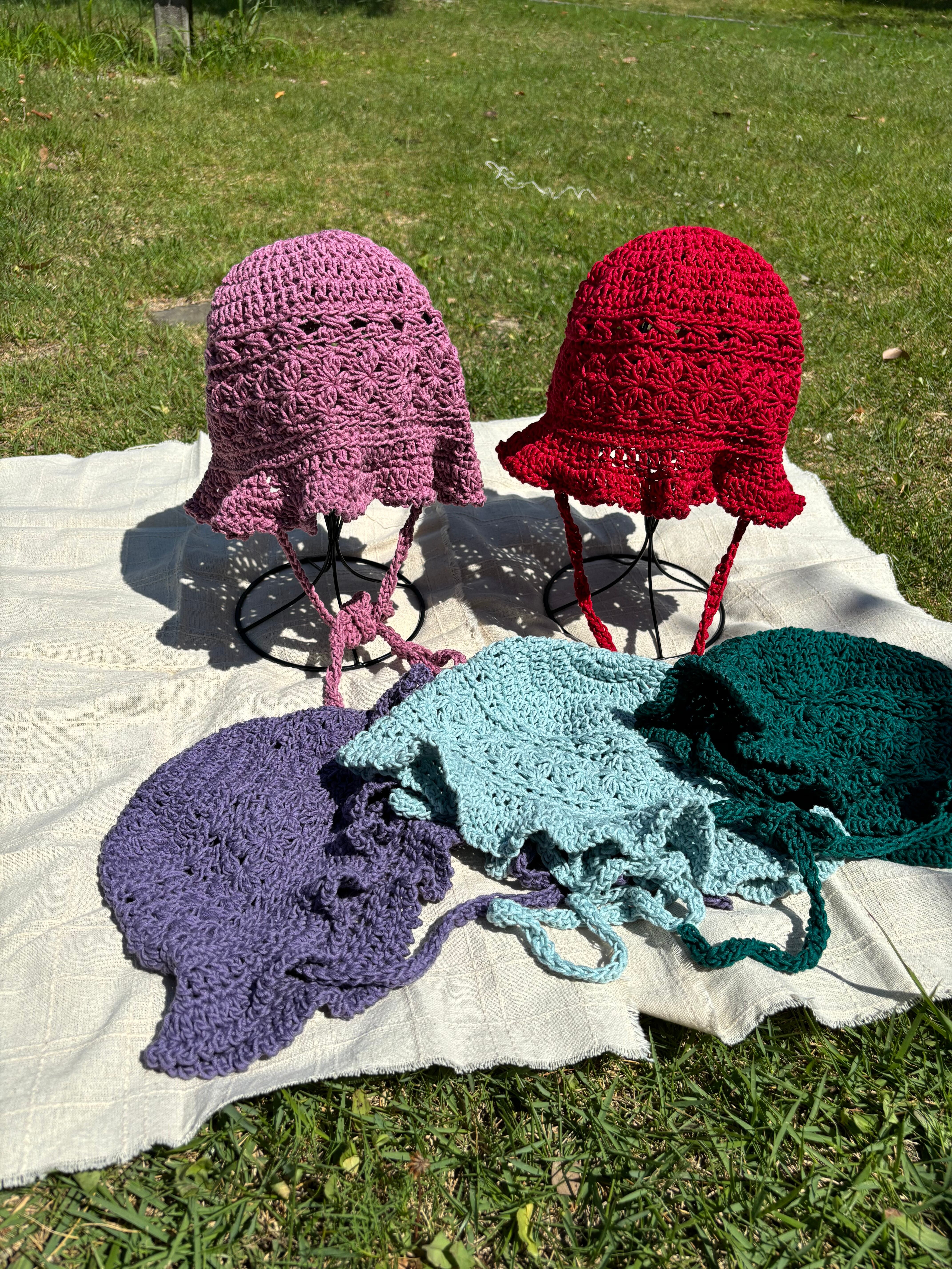 花柄 フリル クロシェハット